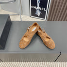 Alaia 2025 Criss Cross With Stud Ballet Flats Brown Beige Suede 293207