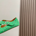 Alaia 2025 Criss Cross With Stud Ballet Flats Shamrock Green Suede 293210