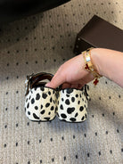 Alaia 25 Criss Cross With Stud Ballet Flats Black White Suede Sheepskin 303694
