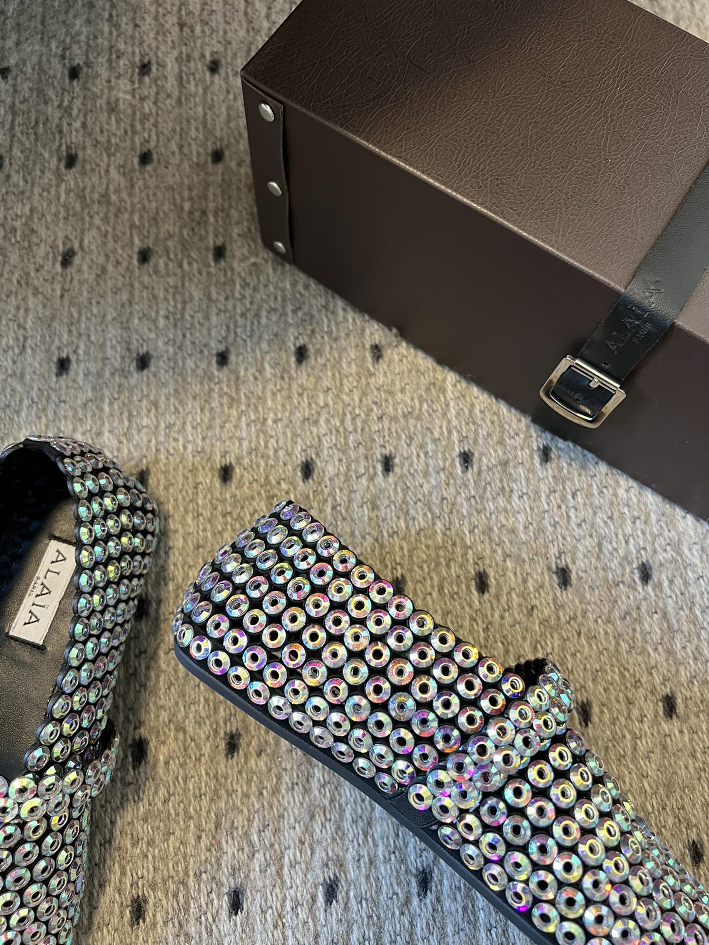 Alaia 25 Embellished Mary Jane Ballet Flats Multicolor Suede 303686