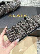 Alaia 25 Embellished Mary Jane Flats Silver Suede 293180