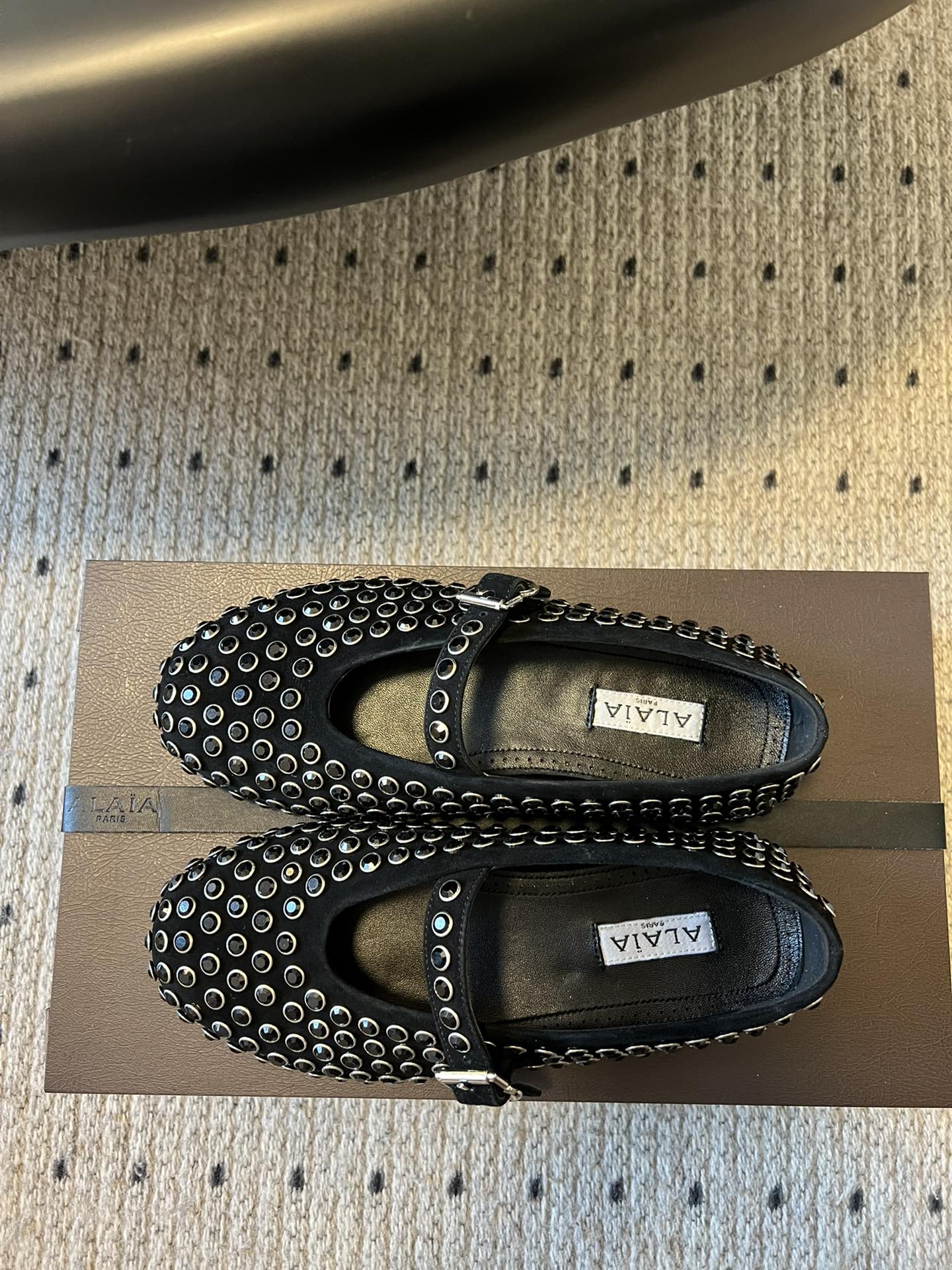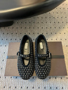 Alaia 25 Strass Ballet Flats Black Suede Goatskin 303726
