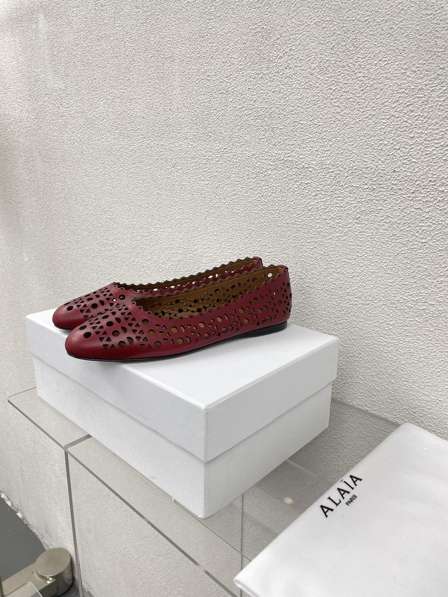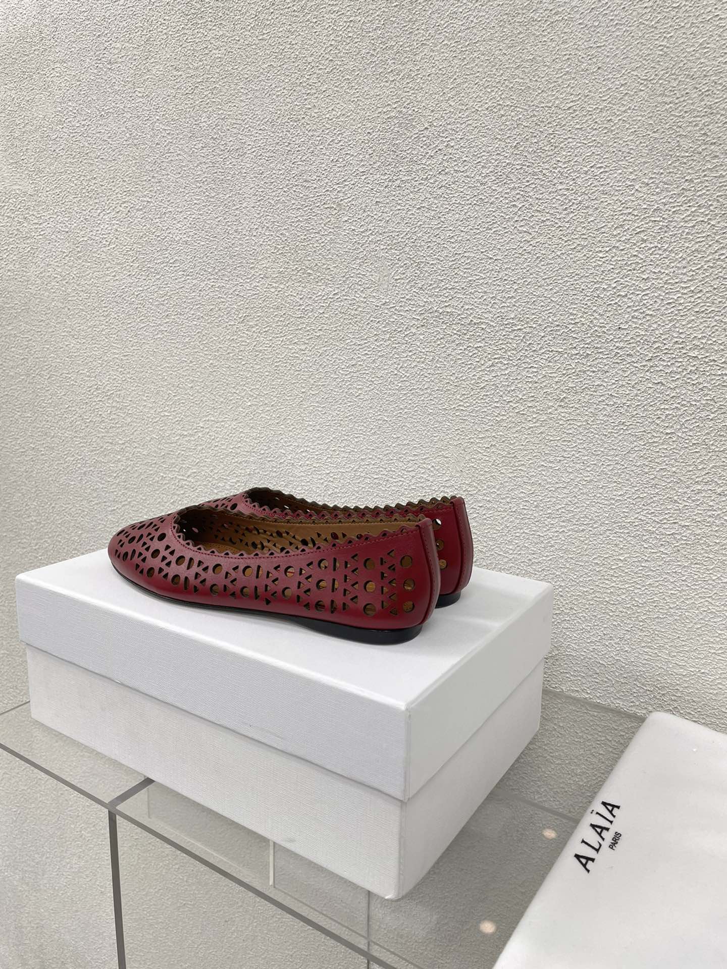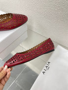 ALAIA BALLET FLAT IN BURGUNDY RED MESH LAMBSKIN