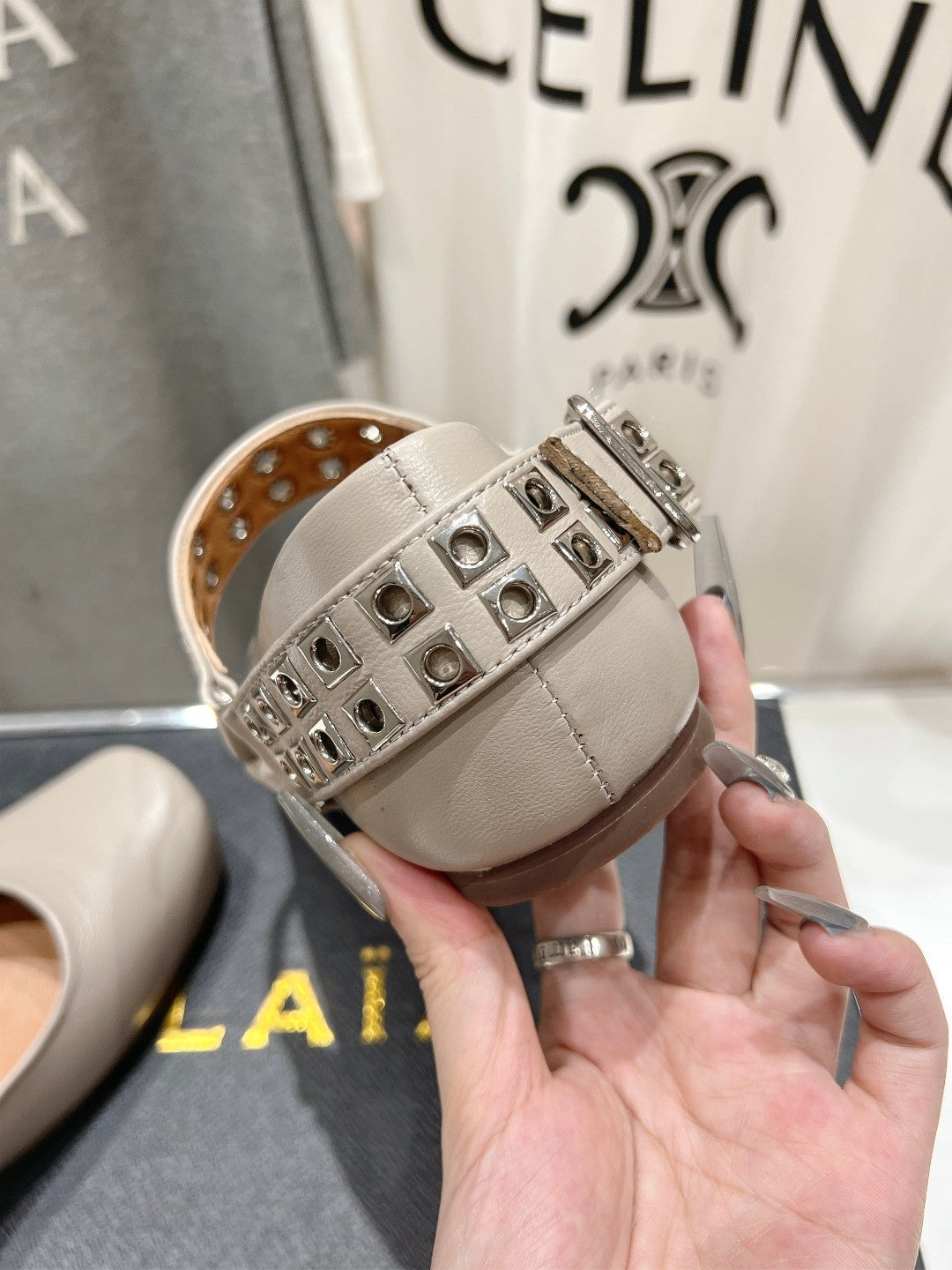 Alaila Biker Ballet Flats In Light Grey Cowhide 911442