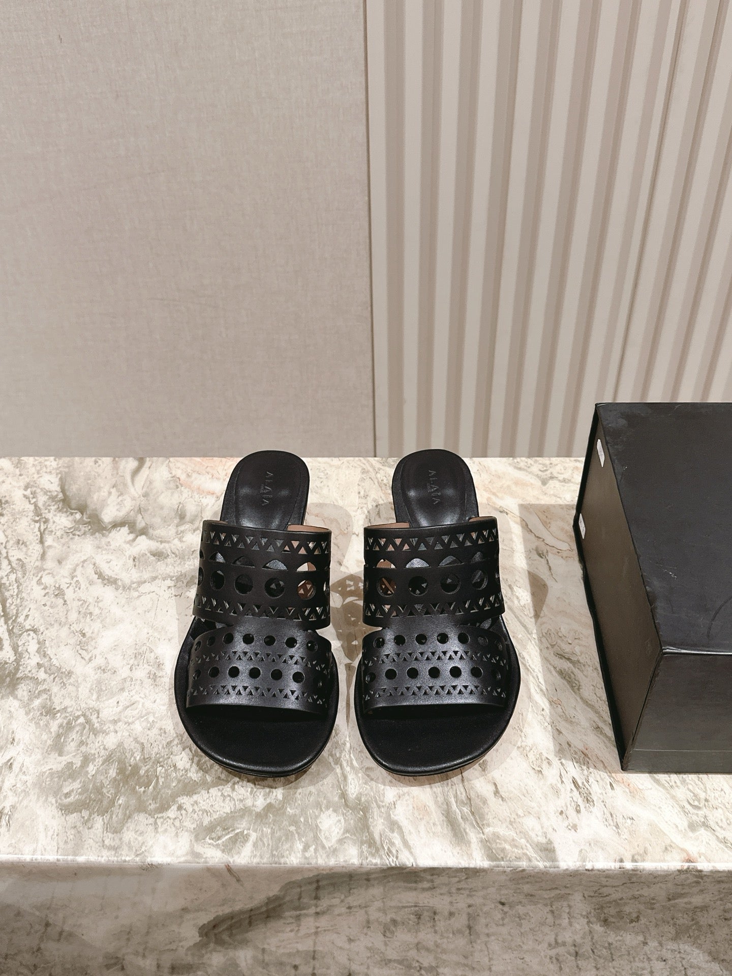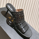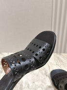 Alaia 2025 Vienne Cutout Kitten-Heel Slide Sandals Black Leather 293648