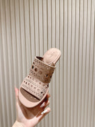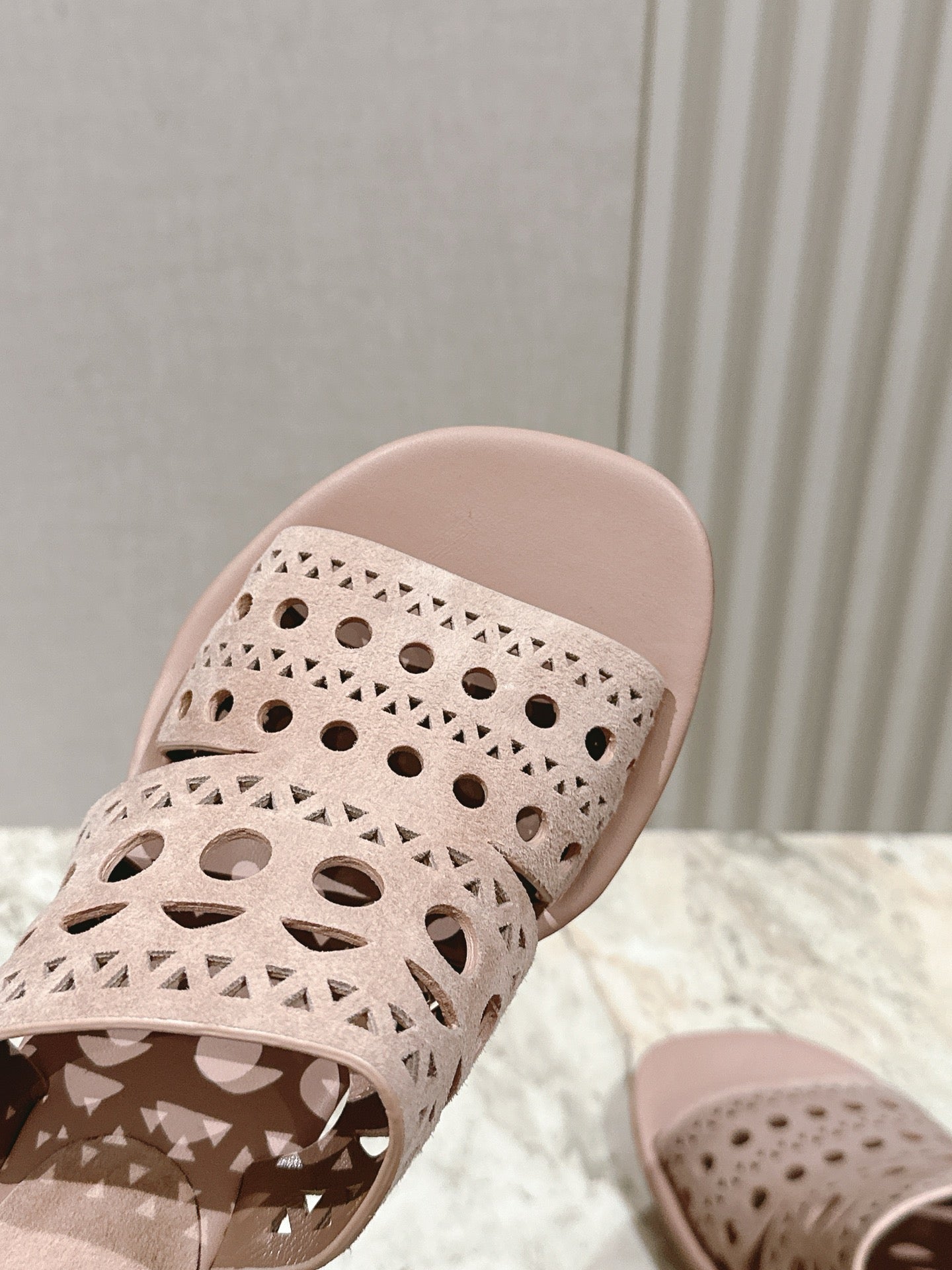 Alaia 2025 Vienne Cutout Kitten-Heel Slide Sandals Pink Leather 293651