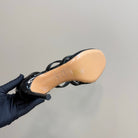 Alaia Fishnet Thong Heels Sandals Black Lambskin 299658