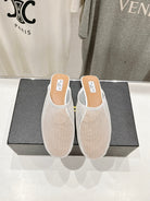ALAIA FLAT MULES IN WHITE MESH FISHNET