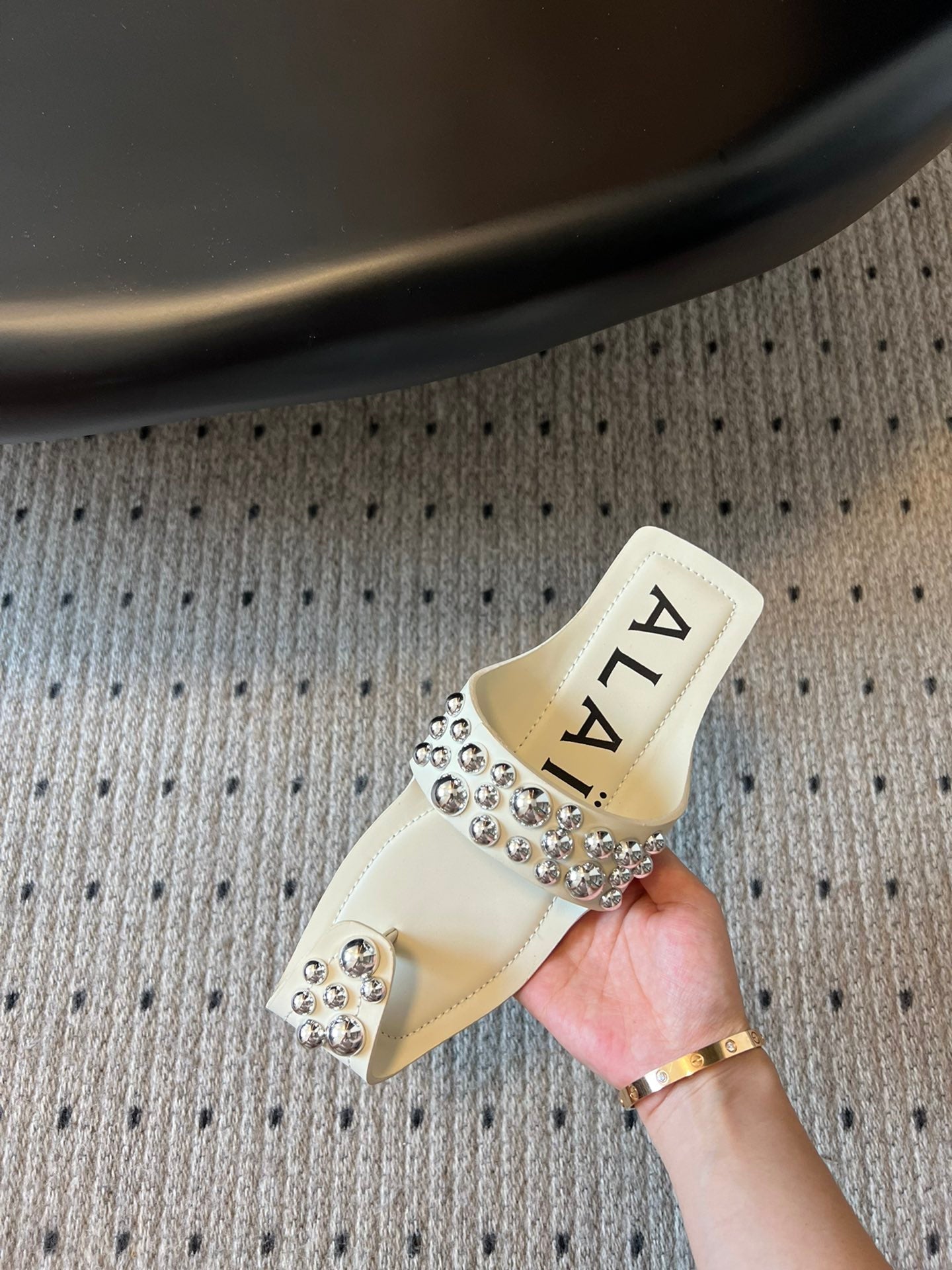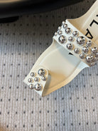 ALAIA FOLDED FLAT MULES WITH SPHERES ON WHITE CALFSKIN
