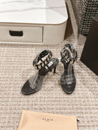 ALAIA HIGH SANDAL IN BLACK CALFSKN AND FILM WITH CRYSTAL