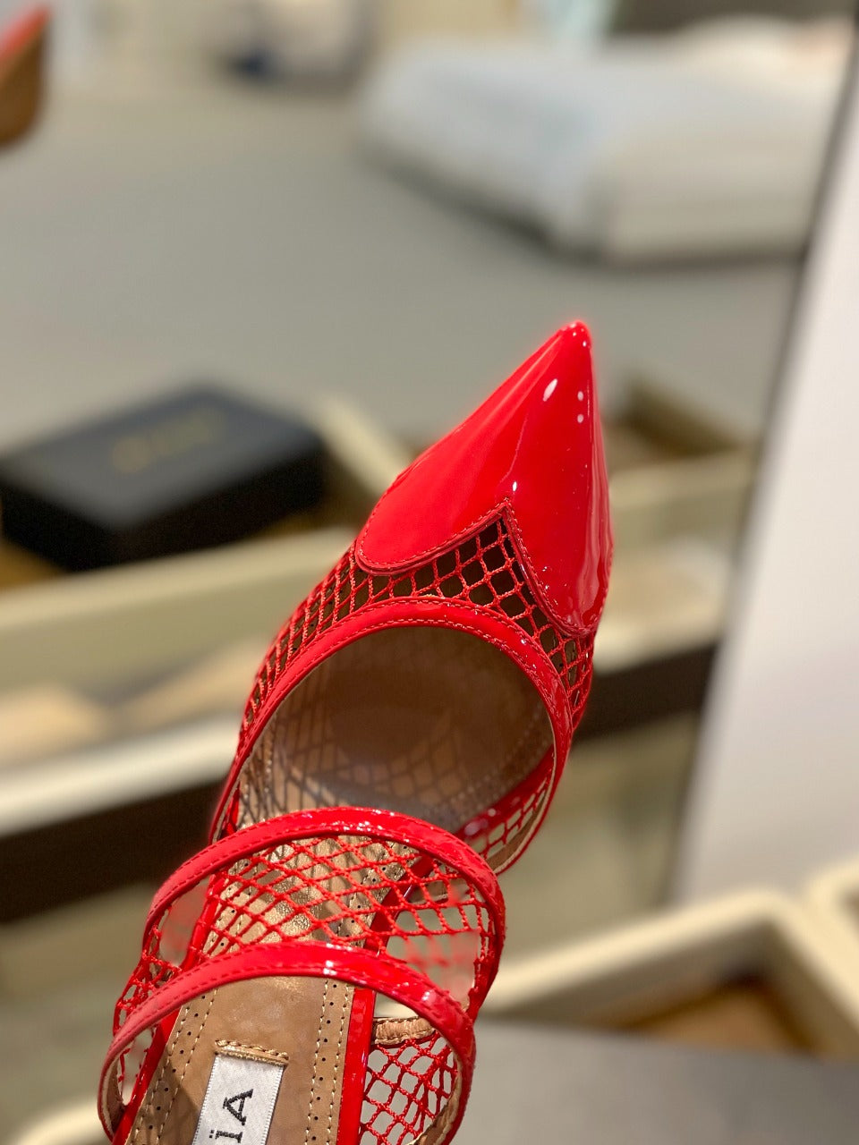 alaia mule 85 fishnet red heart lambskin