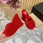 ALAIA PLATFORM WEDGE IN CHERRY RED VELVET WITH HEART EMBROIDERED