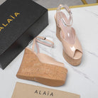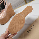 ALAIA WEDGE SANDAL IN BEIGE TAN GLOSSY CALFSKIN AND BEIGE RUBBER