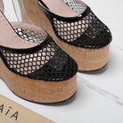 ALAIA WEDGE SANDAL IN BLACK MESH AND BEIGE RUBBER