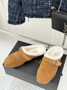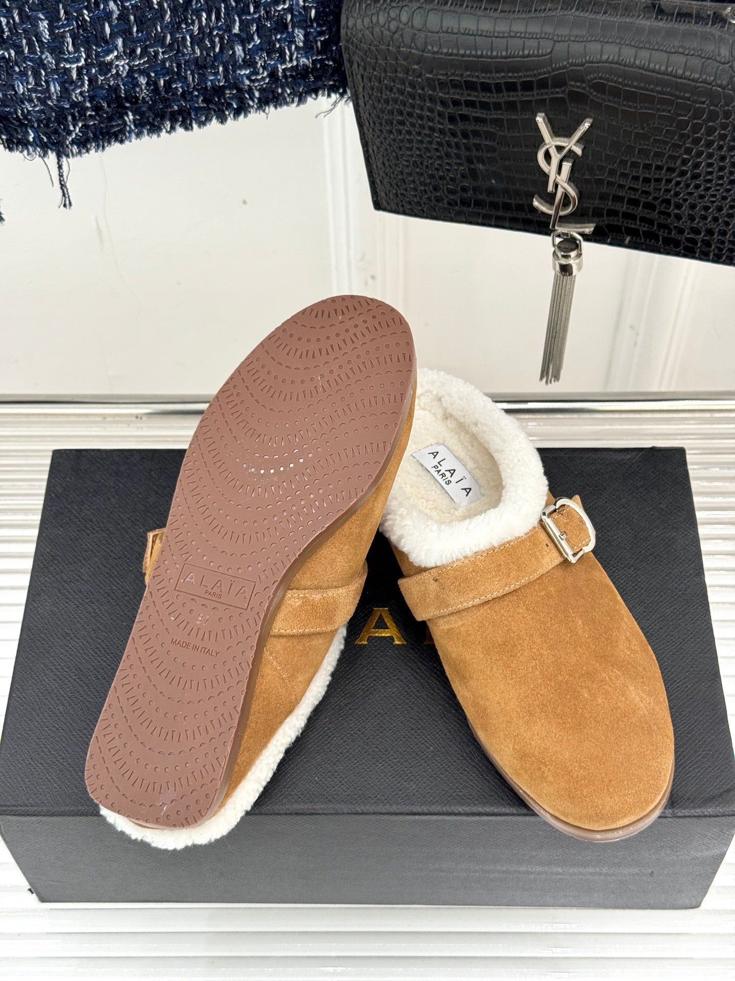 Alaia 25WF slippers belt buckle caramel brown suede wool 472229