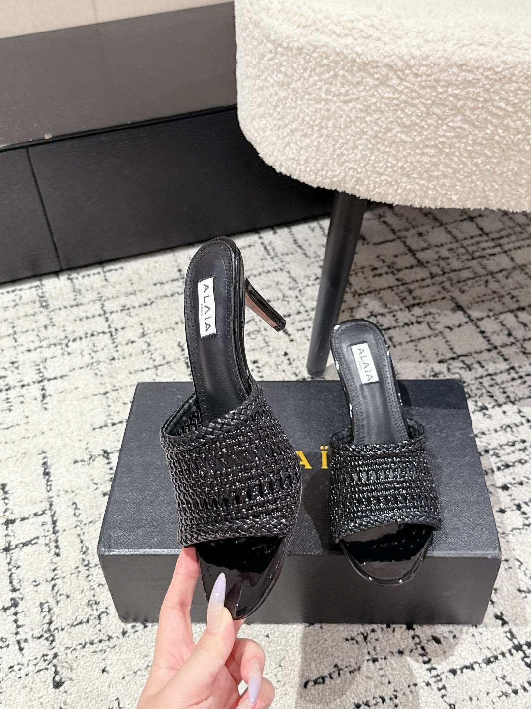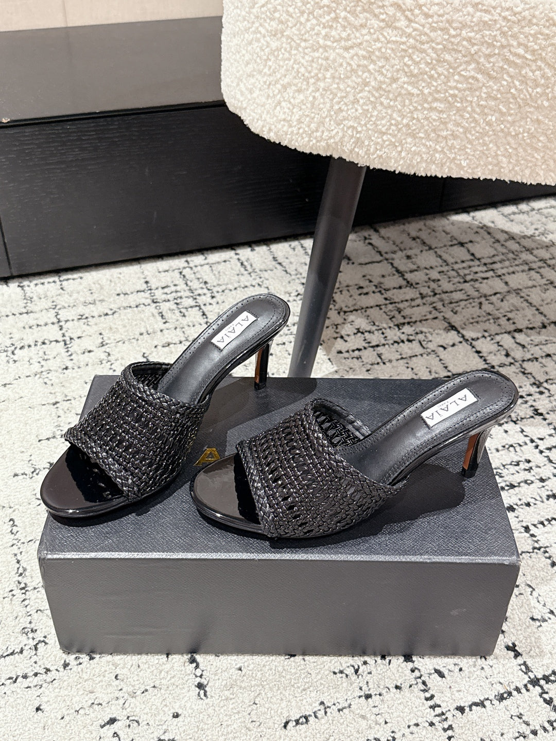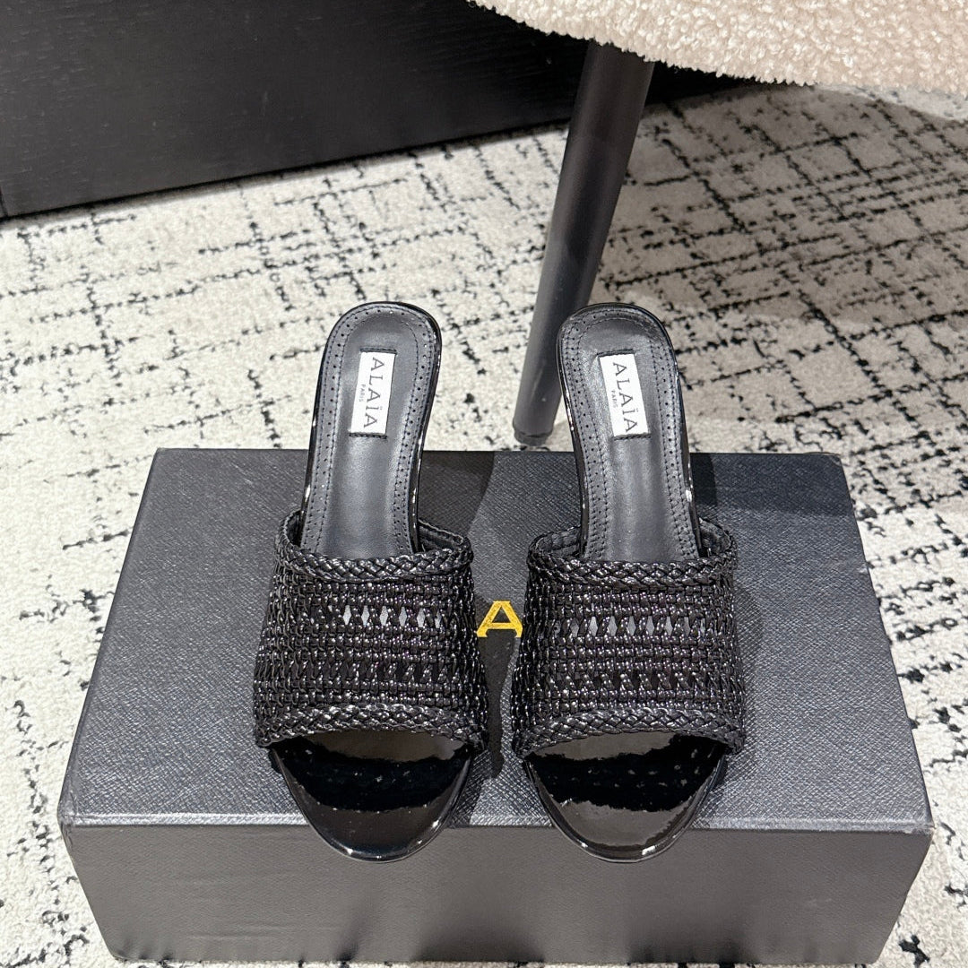 ALAIA Muller high-heeled black woven leather