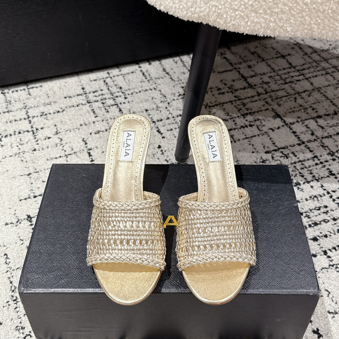 ALAIA Muller high-heeled metallic gold woven leather