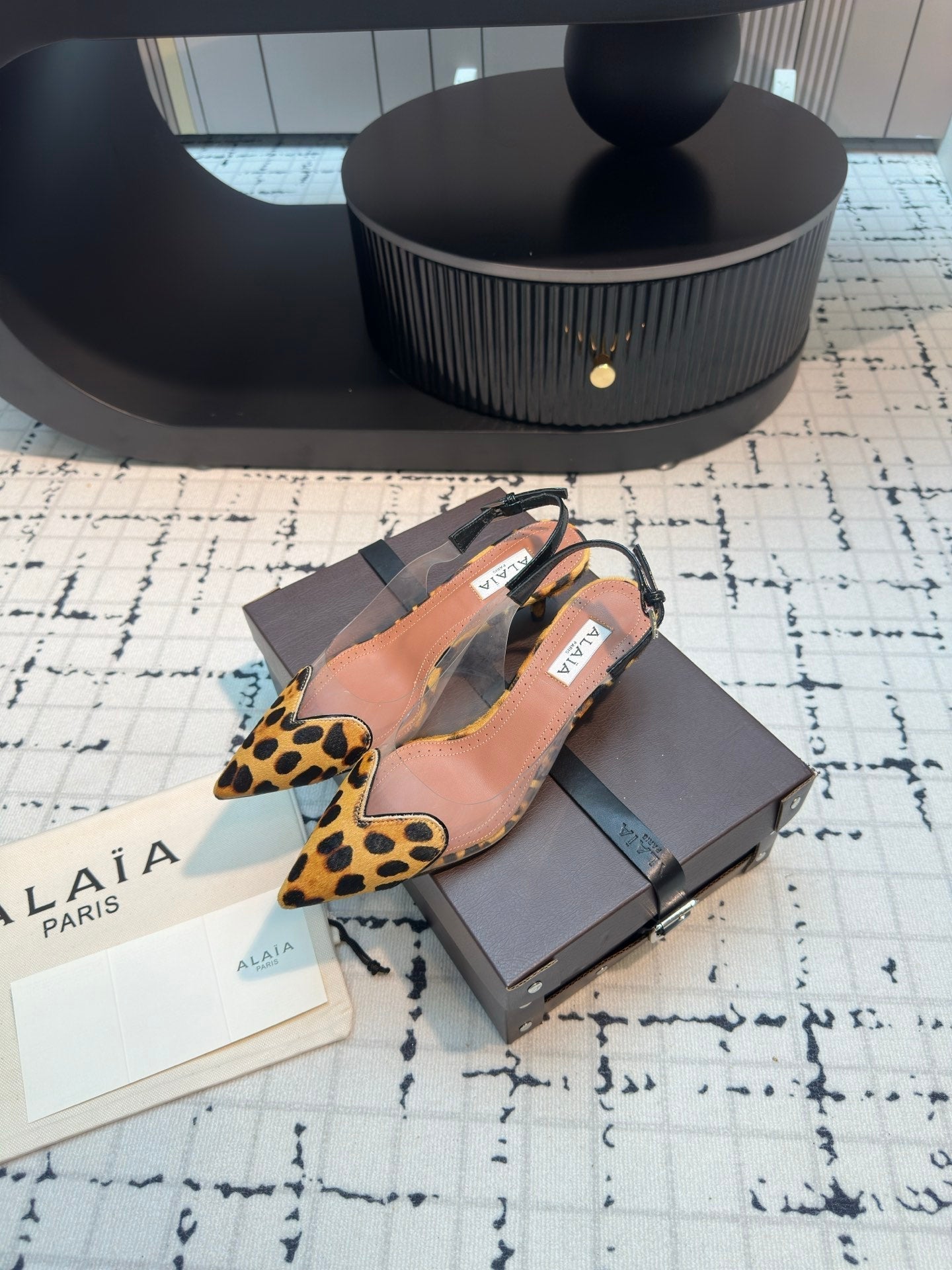 Alaia Heart 50mm Heels Slingbacks Leopard Sheepskin 810203