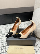 ALAIA HIGH PUMPS 10CM IN BEIGE SUEDE MIX BLACK CALFSKIN