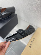 ALAIA MARY JANE PEARL IN GLOSSY BLACK LAMBSKIN