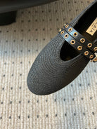 ALAIA MARY JANE SHOES IN BLACK ZP CUSTOM STRAW AND DENIM