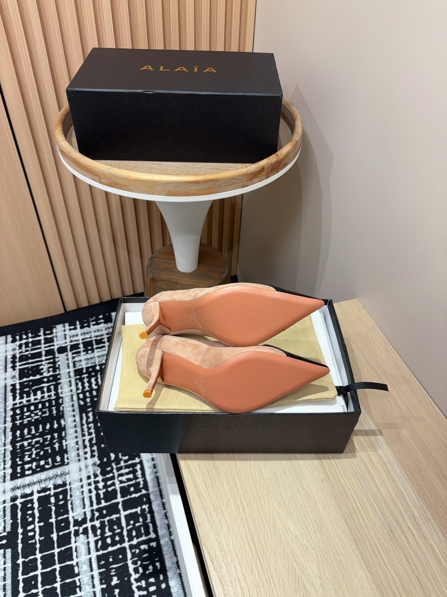 Alaia Pump Coeur 85mm In Beige Suede 933078