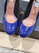 ALAIA ROUND-TOE HIGH HEELS 10 CM IN NAVY BLUE CALFSKIN