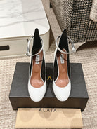 ALAIA ROUND-TOE HIGH HEELS 10 CM IN WHITE CALFSKIN