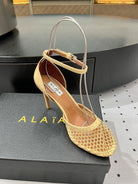 Alaila High Fishnet Pumps 90mm In Light Yellow Mesh Fabric 954852