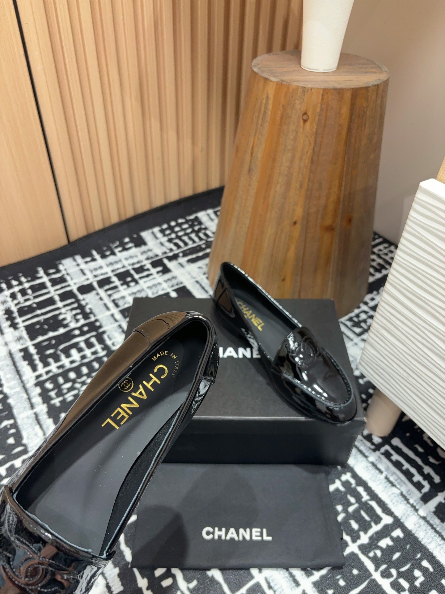 CC Moccasins Glossy Black Lambskin