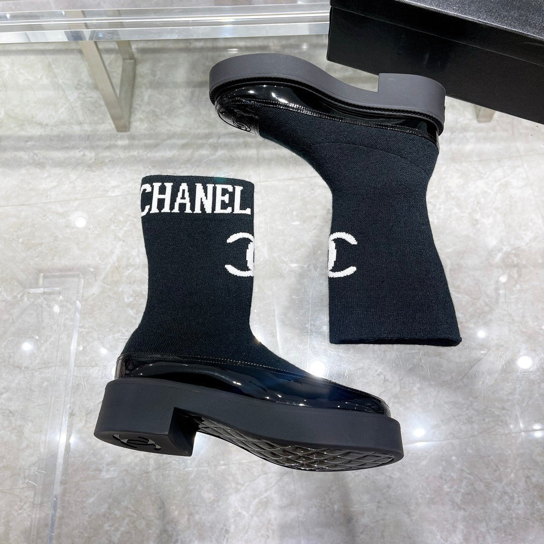 CC Short Boots 45mm Black Stretch Wool And Cowhide