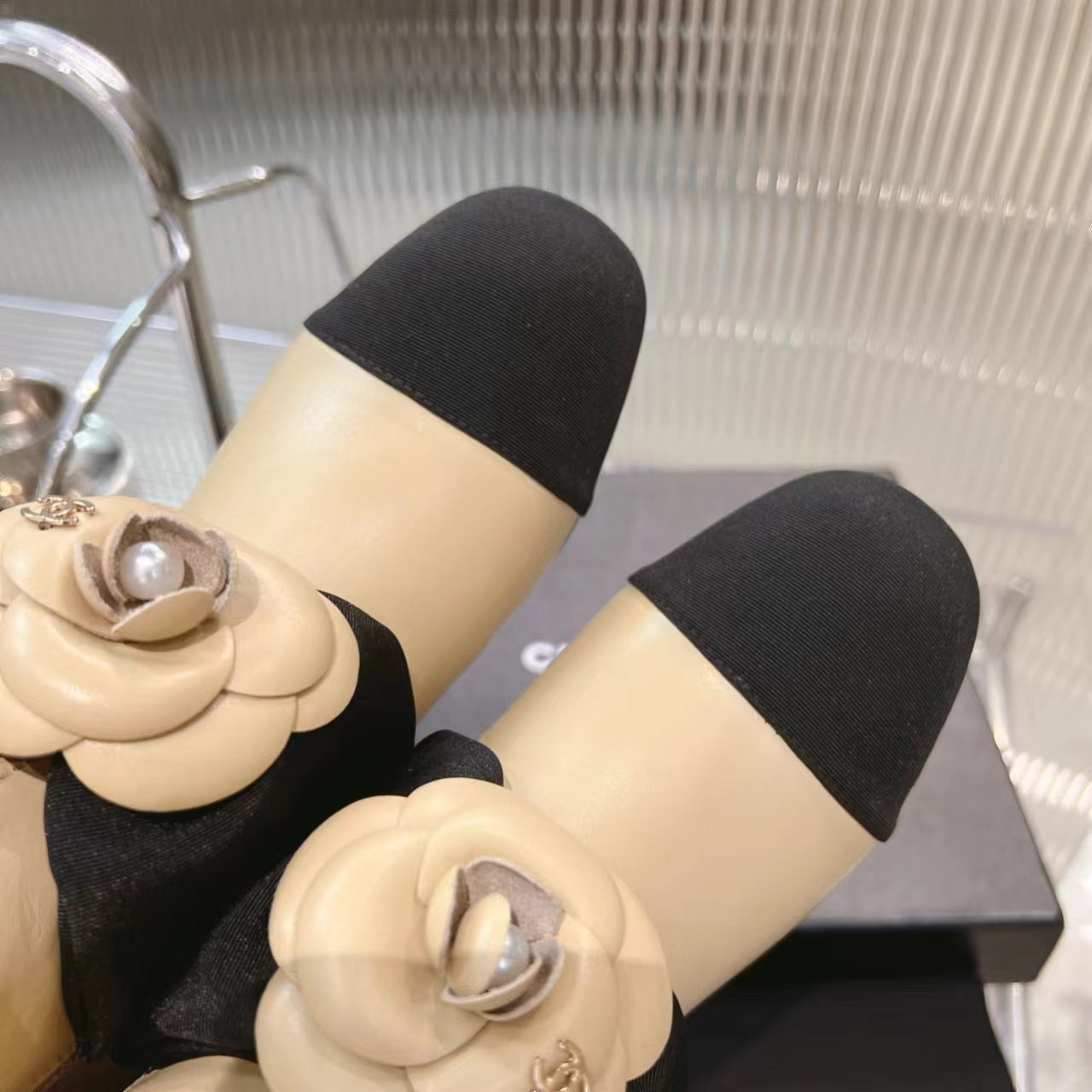 CC Short Boots 60mm Beige Camellia Cowhide