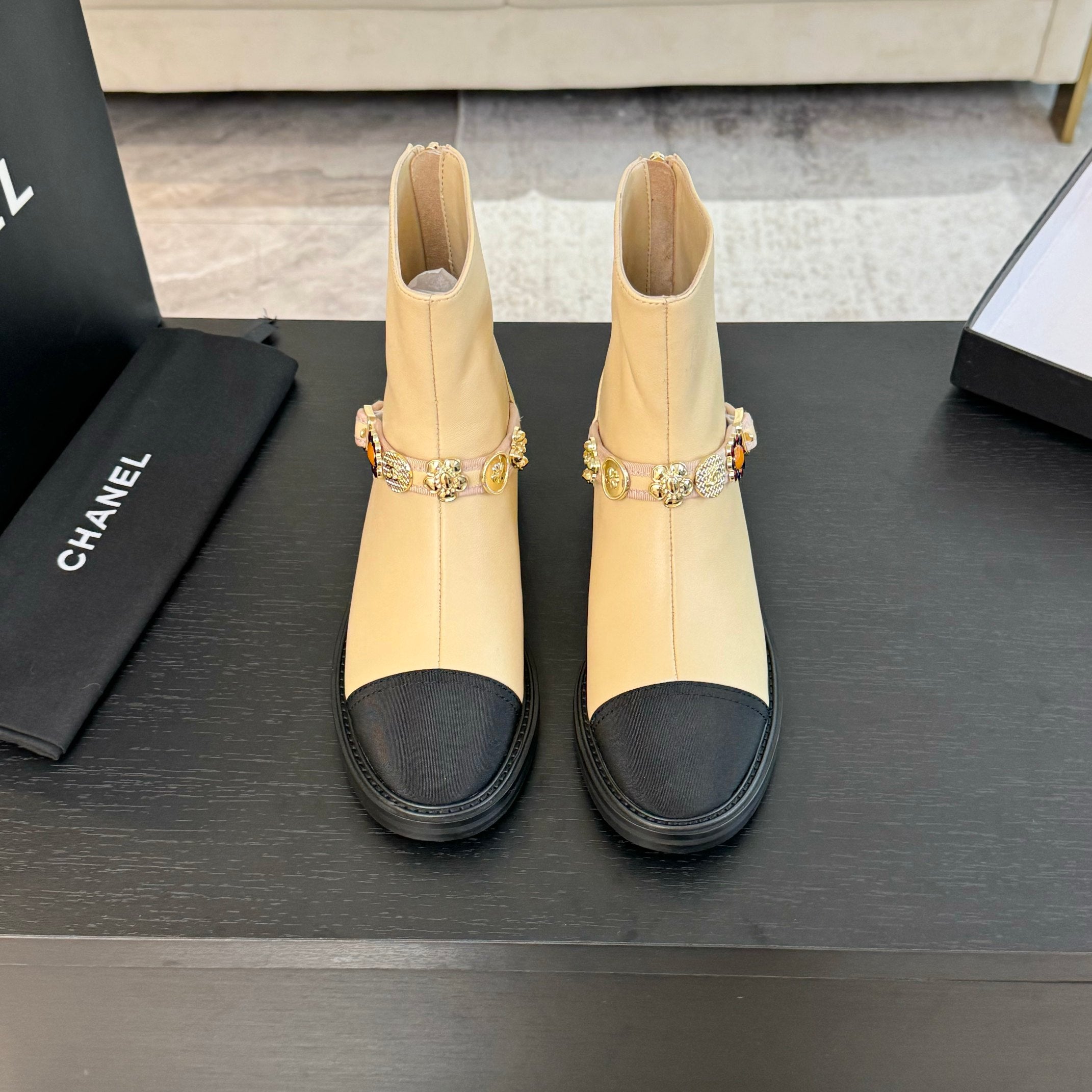 CC Short boots Beige Cowhide Mix Fabric Denim