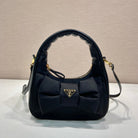 BOW HOBO BAG 22 IN BLACK RE-NYLON AND LAMBSKIN