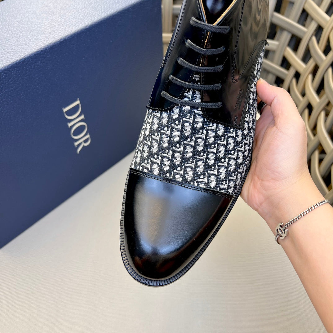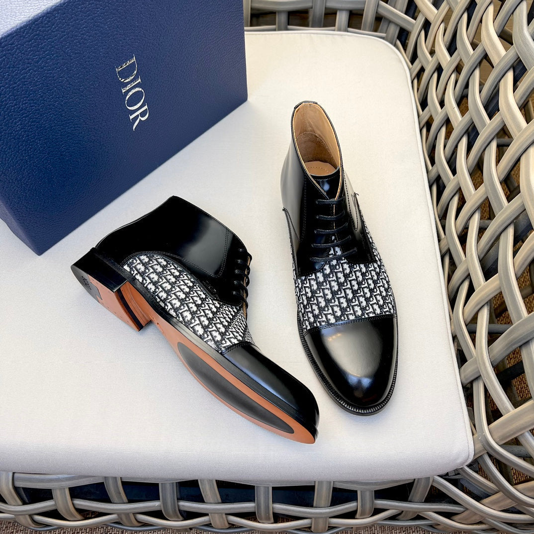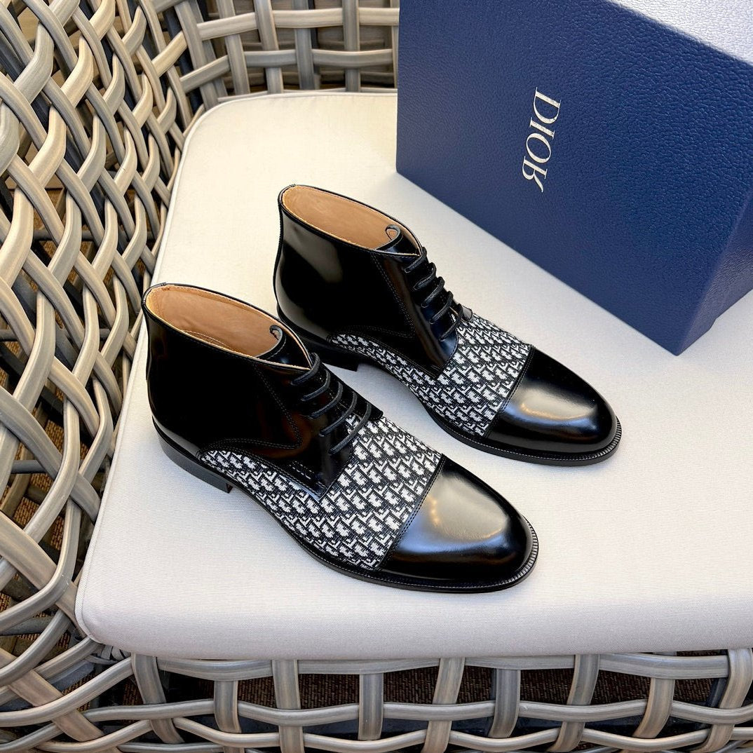 CD HOMME LACE-UP ANKLE BOOT BLACK AND WHITE CALFSKIN