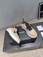 Chanel 25 Sneaker Beige Black White Suede 540307