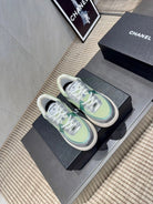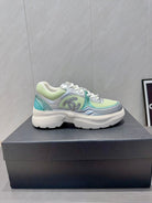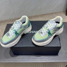 Chanel 25 Sneaker White Green Silver Mesh Leather 540315