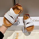 CHLOÉ CROSS STRAP SANDAL IN WHITE MIX BRONZE BROWN RUBBER WITH GOLD HARDWARE