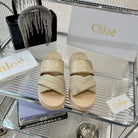 CHLOÉ MILA FLAT SLIDES 5 CM IN BEIGE EICRU CALFSKIN AND RE-NYLON