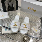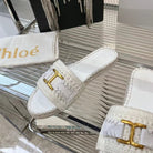 CHLOÉ WOVEN SLIPPER IN WHITE WOOL AND LAMBSKIN GOLD HARDWARE