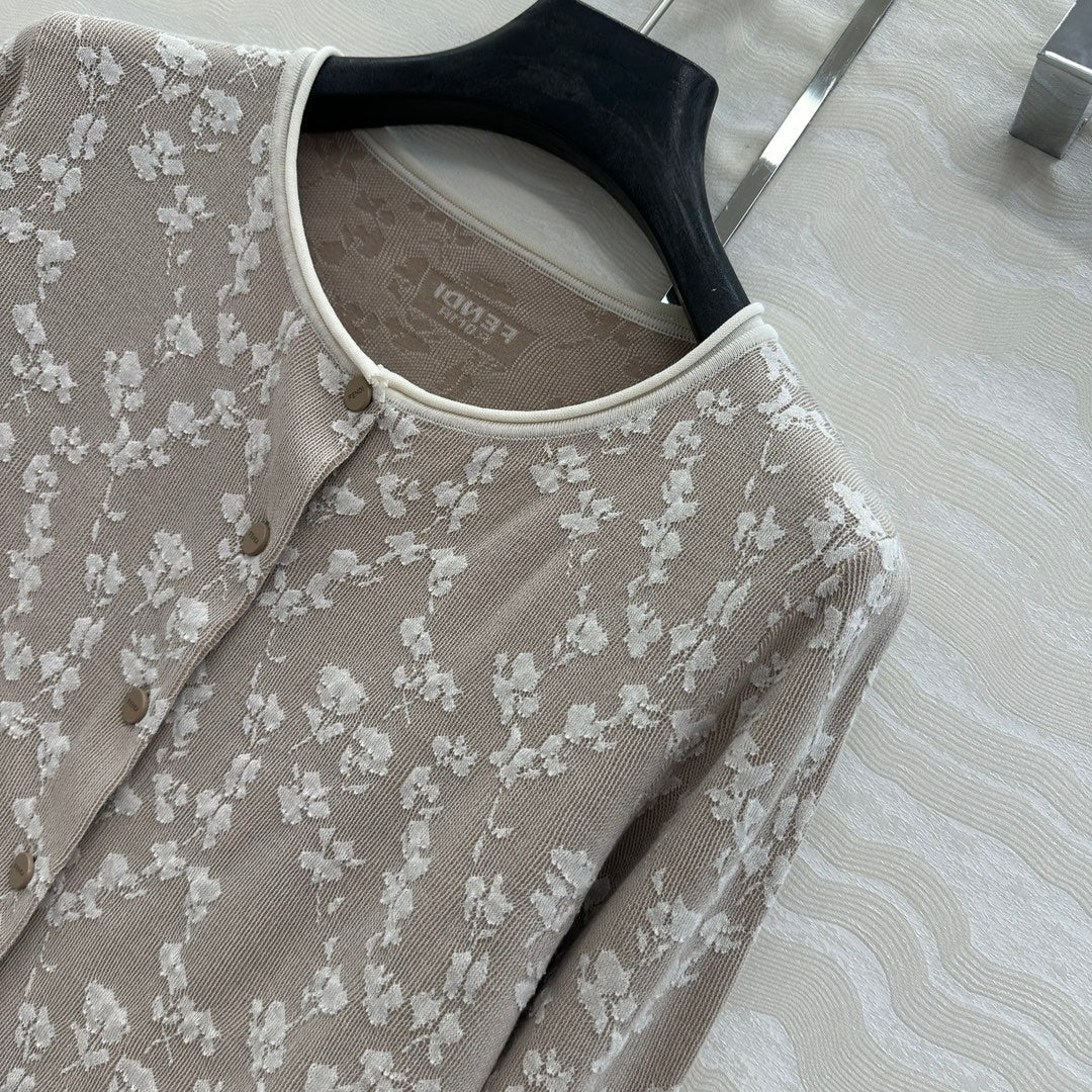 Fendi Knitted Cardigan Beige Cotton Viscose