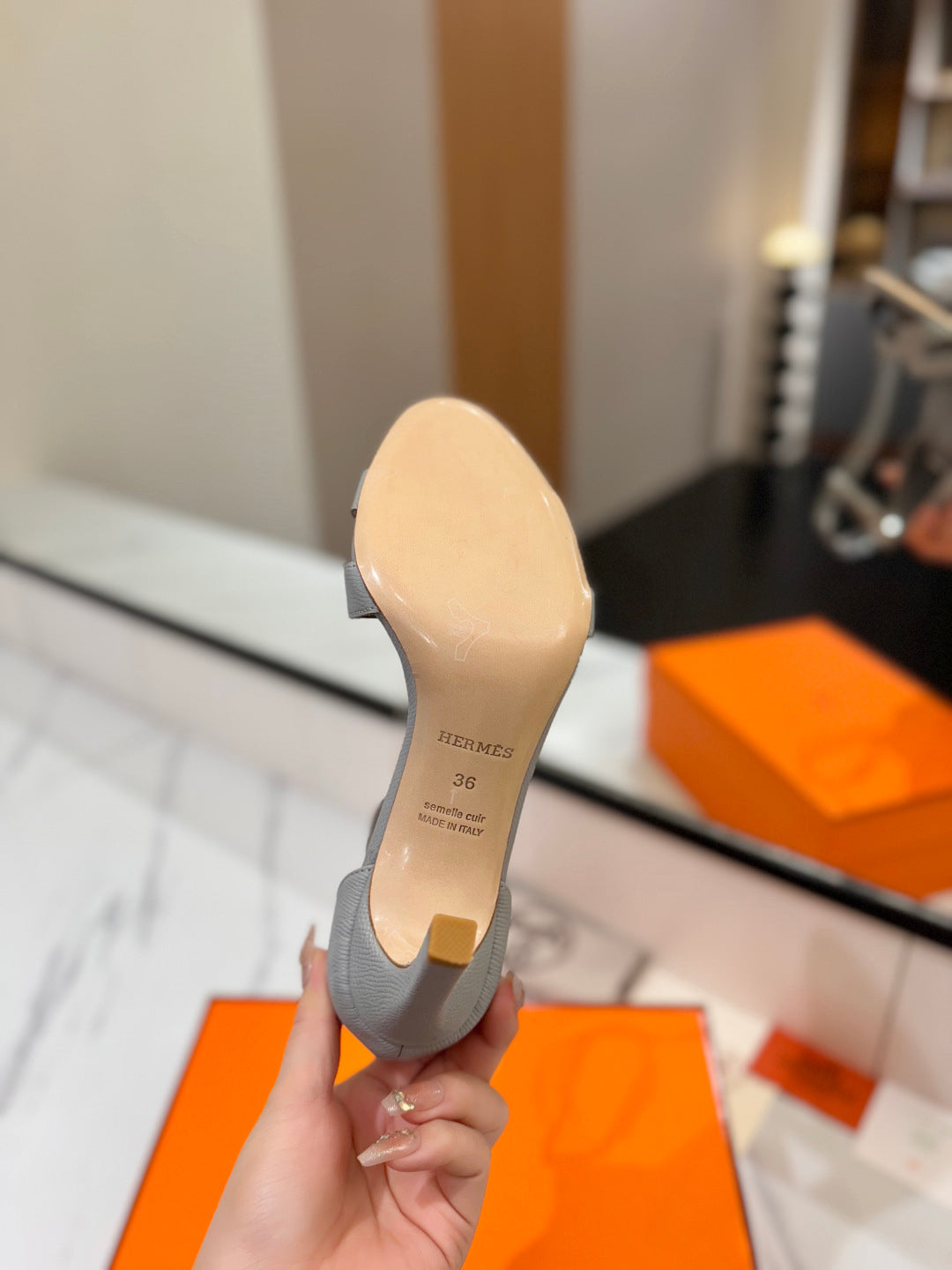 HM Joy Heeled Sandals Gray Cowhide 294898