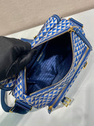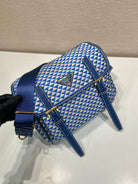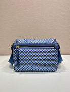 MESSENGER BAG 25 IN BLUE MIX WHITE TRIANGLE PATTERN EMBROIDERED FABRIC