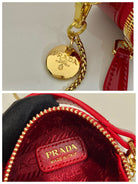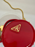 MINI ROUND BAG 8 IN RED GLOSSY CALFSKIN GOLD HARDWARE