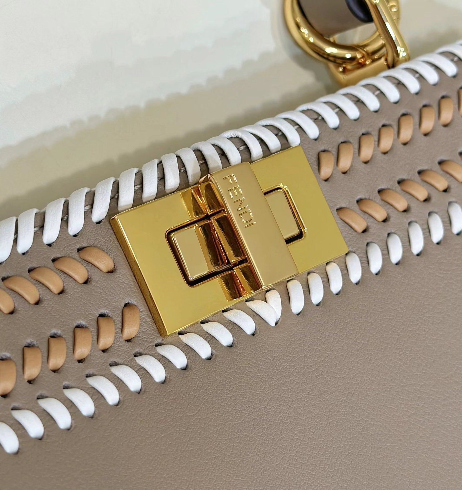 PEEKABOO ISEEU 27 IN MEDIUM BROWN INTERLACED CALFSKIN GOLD HARDWARE