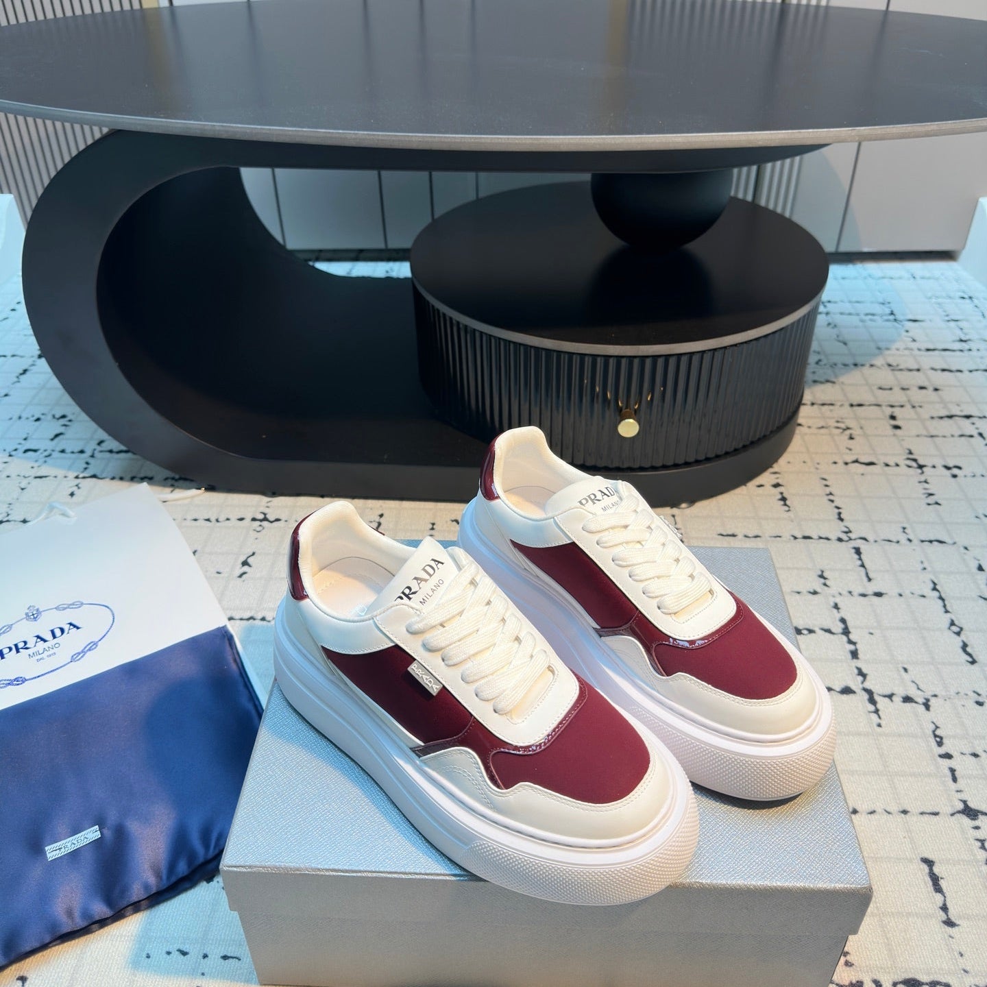 Prada 25s Platform Sneakers White Red Cowhide 538422