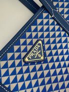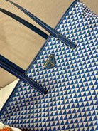 TOTE BAG 33 IN BLUE MIX WHITE TRIANGLE PATTERN EMBROIDERED FABRIC