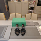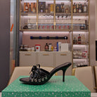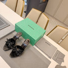 BOW-EMBELLISHED HIGH MULES IN BLACK SHEEPSKIN