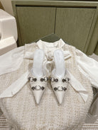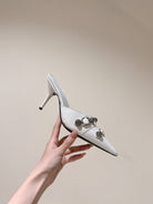 CAGOLE POINTED HIGH MULES IN WHITE SHINY CALFSKIN