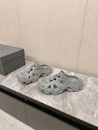 CUT-OUT MULES IN GRAY RUBBER